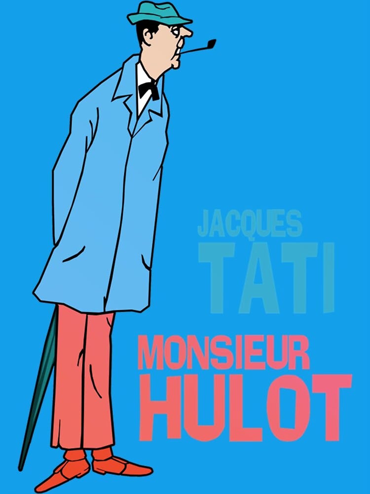 però decideixo callar, fumar, guardar-me de la pluja i sentir entre bambolines les converses d’entre bambolines. els actors de l’obra surten, tots s’abracen i criden i beuen cervesa i fumen més que jo i son guapus i guapes i m’ignoren (o si no m’ignoren, ho dissimulen prou bé —clar, son actors—i només pensen que soc una mica creepy; no no, segur que m’ignoren) em sento monsieur hulot a qualsevol escena de qualsevol pel·lícula. penso que em vull tatuar la silueta de monsieur hulot al braç esquerre.